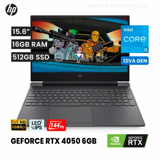 NOTEBOOK GAMER HP 15.6" VICTUS 15-FA0021LA I5-12450H 16GB 512GB GeForce RTX 3050 FHD 144HZ W11H